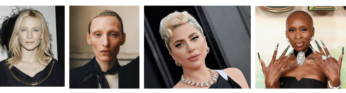 Women like Cate Blanchett, Lady Gaga, and Cynthia Erivo perfectly embody the Baroque aesthetic through their physical attributes and fearless approach to fashion. Cate Blanchett’s ethereal elegance, paired with her sculptural features, captures the drama and refinement of Baroque, while Lady Gaga’s bold and transformative style channels its extravagant opulence. Cynthia Erivo, with her striking presence and unique beauty, exudes confidence, effortlessly balancing the grandeur of Baroque with her modern, empowered persona. These women showcase how the Baroque aesthetic can be brought to life through both physical presence and the artistry of fashion.