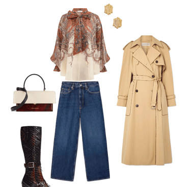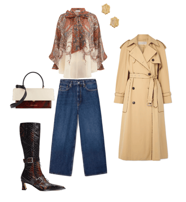 Shoes: Crocodile-patterned boots from Miista with buckles, adding a bold twist to keep the outfit from looking overly classic with the trench.