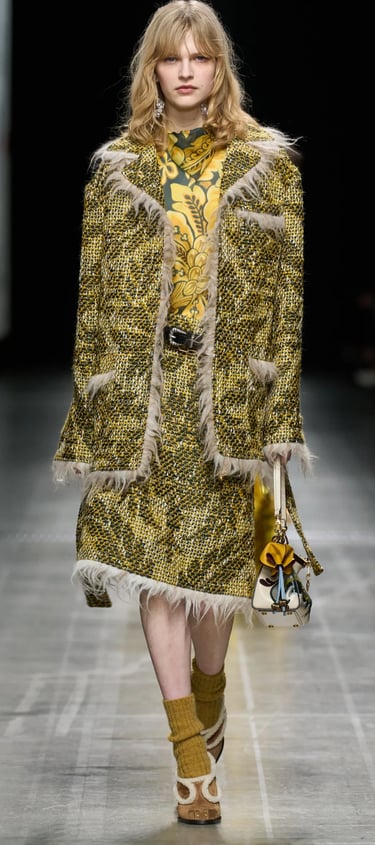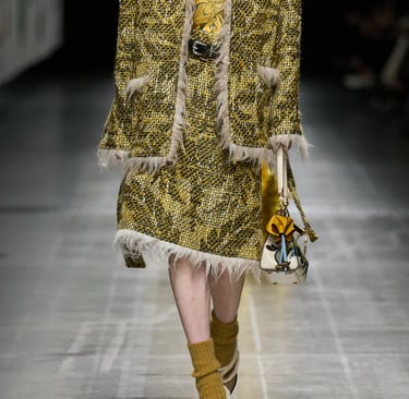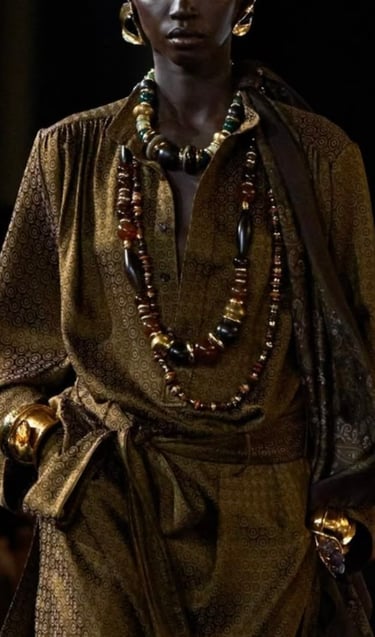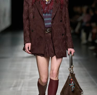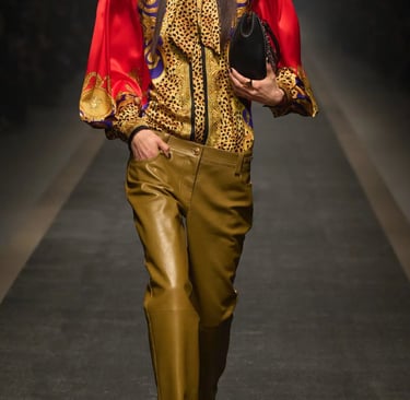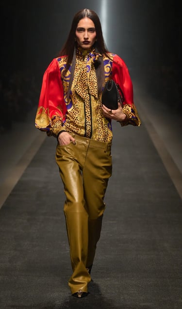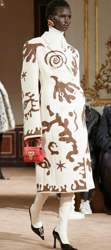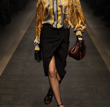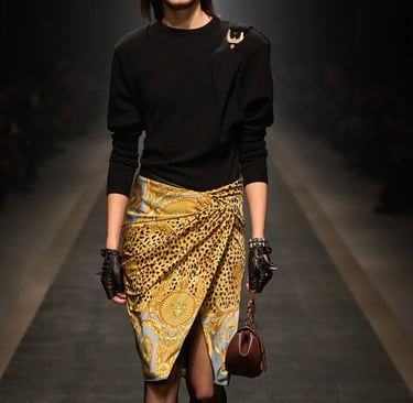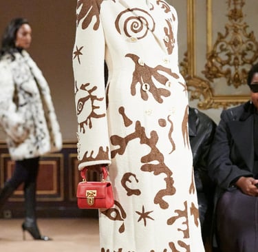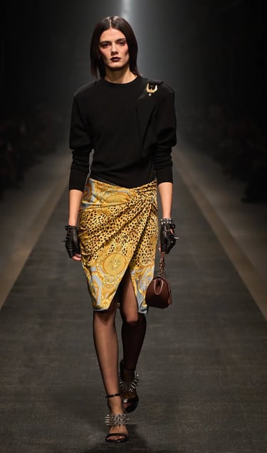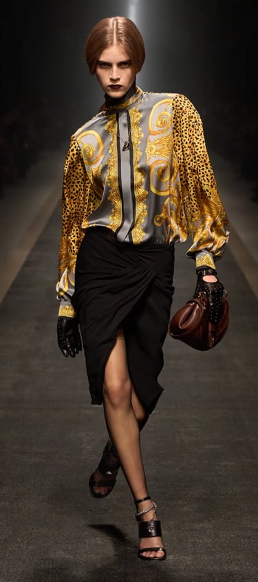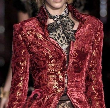 Dolce & Gabbana embodies the Baroque heritage with its golden brocades, opulent prints, and bold jewelry. Drawing inspiration from 17th-century Italian palaces, the brand’s collections are filled with intricate embroideries and rich embellishments. Their maximalist approach celebrates Baroque's richness, blending it with a modern, luxurious sensibility.