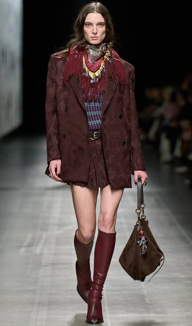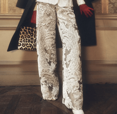Etro revisits Baroque through sophisticated scarf prints and intricate embroidery. Known for paisley patterns, Etro’s take on Baroque is more bohemian, with an emphasis on luxurious fabrics and artistic detailing. This version of Baroque is relaxed yet rich in texture, offering a modern, artistic feel that still captures the essence of opulence.