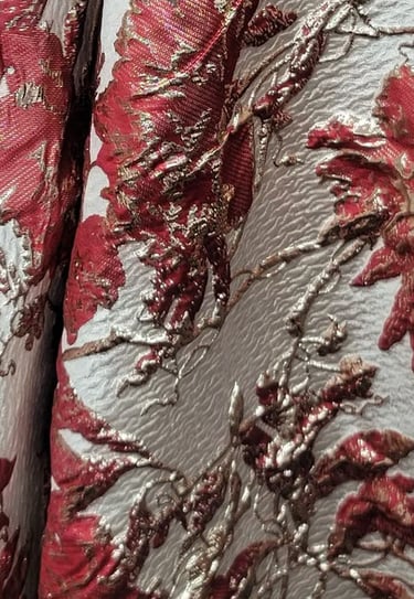 Brocade: Brocade, with its raised woven patterns, was a hallmark of Baroque fashion. Traditionally woven with gold or silver threads, it was reserved for the elite. Now, modern designers reinterpret it in structured blouses, tailored jackets, and even accessories. The fabric itself tells a story, with its ornate motifs recalling palace tapestries and old-world craftsmanship.
