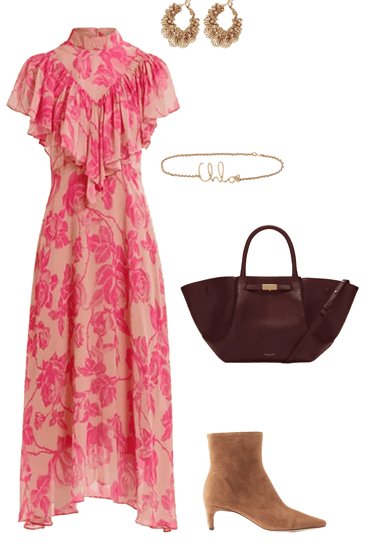 Accessories: A thin belt from Chloé to cinch the waist, paired with gold earrings. The bag from Demellier adds a refined touch, while earrings from Gas Bijoux bring a bohemian flair.