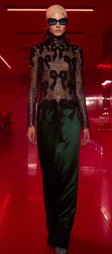 Alessandro Michele, through his work at both Gucci and Valentino, has brought a bold, eclectic vision to Baroque. He embraces eccentricity by mixing ornate patterns, vintage motifs, and modern streetwear elements, making the Baroque aesthetic playful and contemporary. Michele’s designs combine opulence with a surreal, maximalist flair, blending historical references with innovative, artistic expressions that capture the Baroque spirit in fresh, unexpected ways.